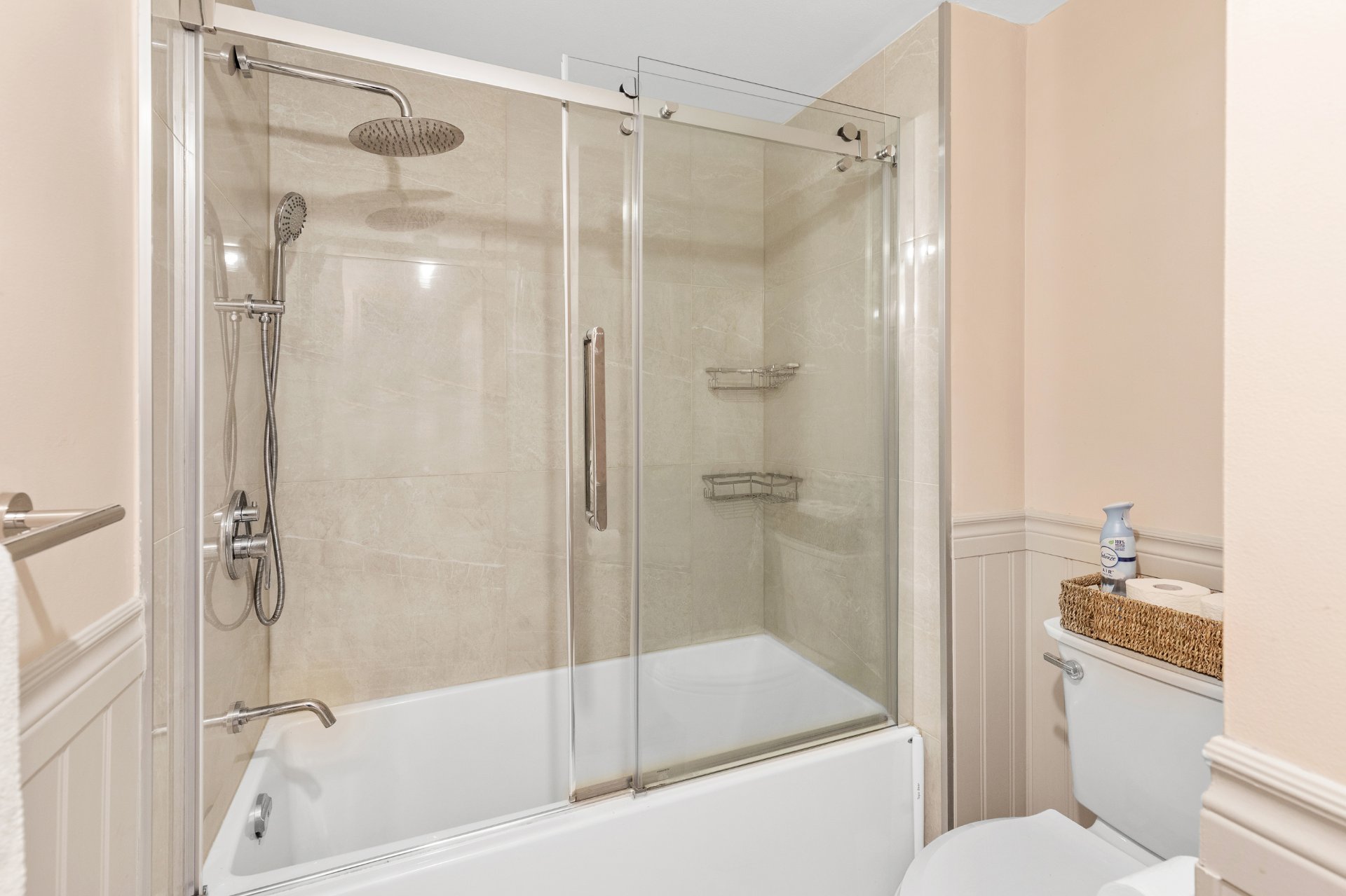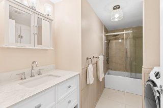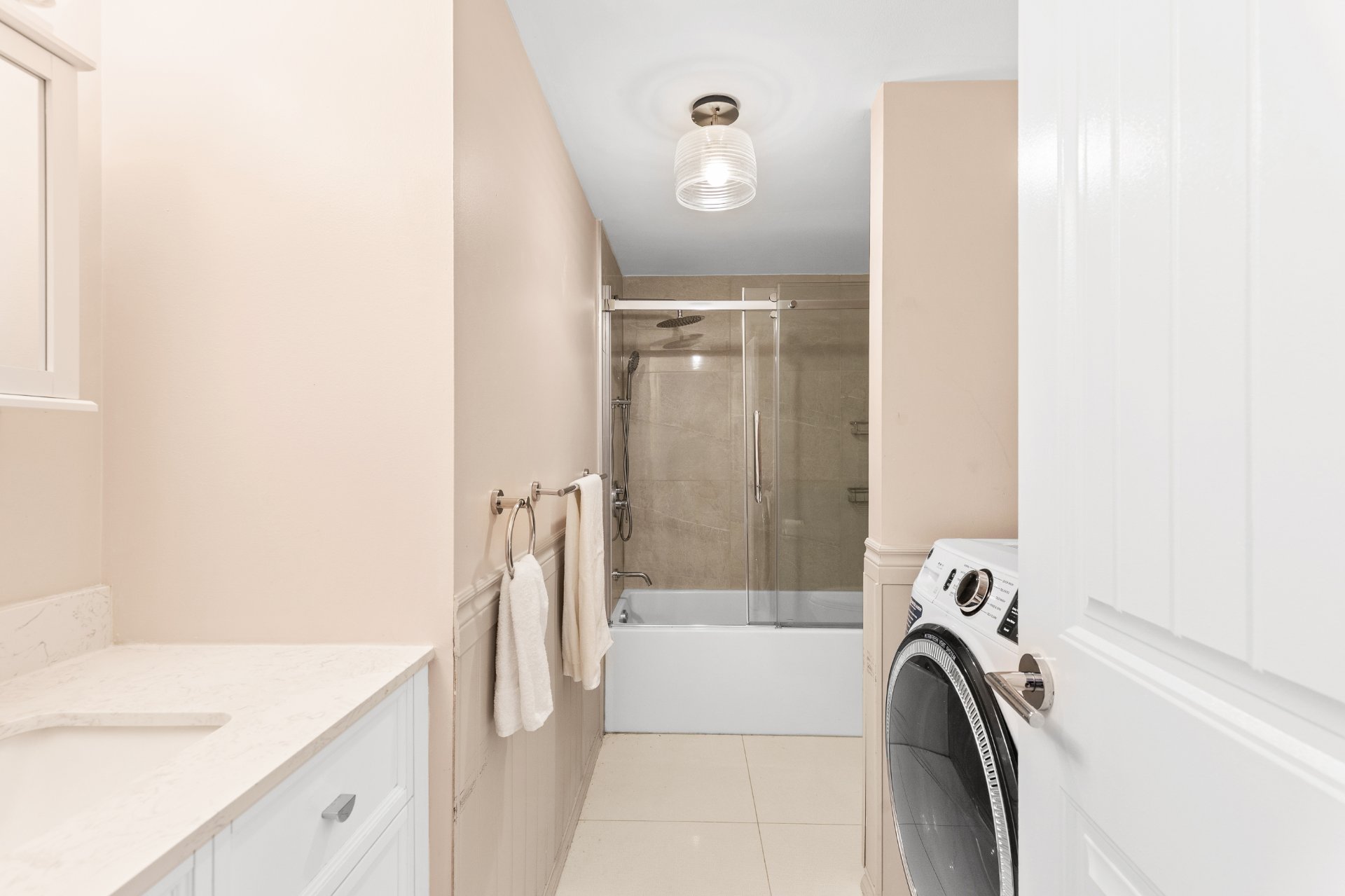 bain-douche muni de portes vitrées, coin buanderie intégré